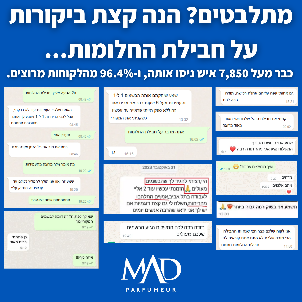 אנחנו לא אומרים את הנתונים האלה כדי להשוויץ, אנחנו מציגים אותם כדי להראות לכם עד כמה שווה לכם לקנות את הבשמים שלנו ומה באמת לקוחות שכבר קנו חושבים עליהם...